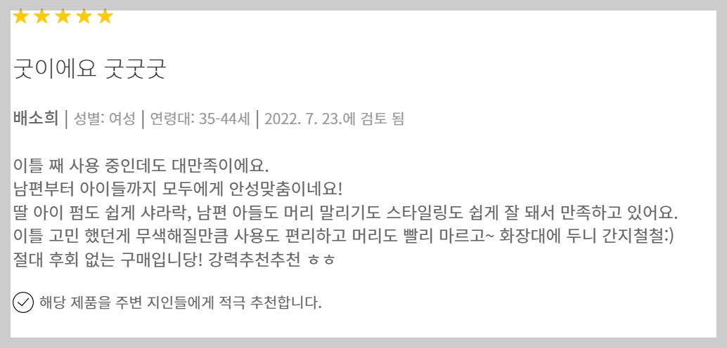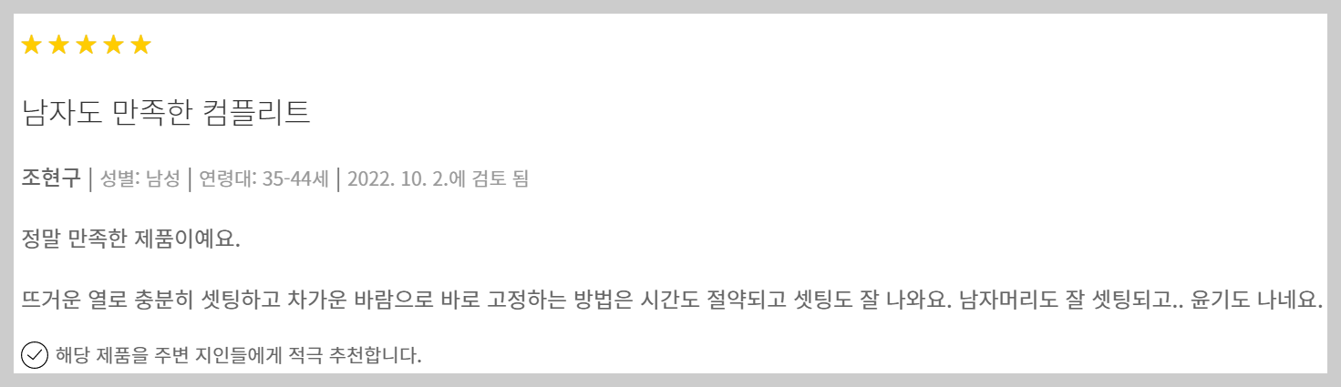 위에 언급한 단점과 불편한 점은 뉴 다이슨 에어랩의 편리함과 혁신에 비하면 정말 사소합니다. 저도 억지로 찾으려 노력하며 작성하였음을 알려드립니다.