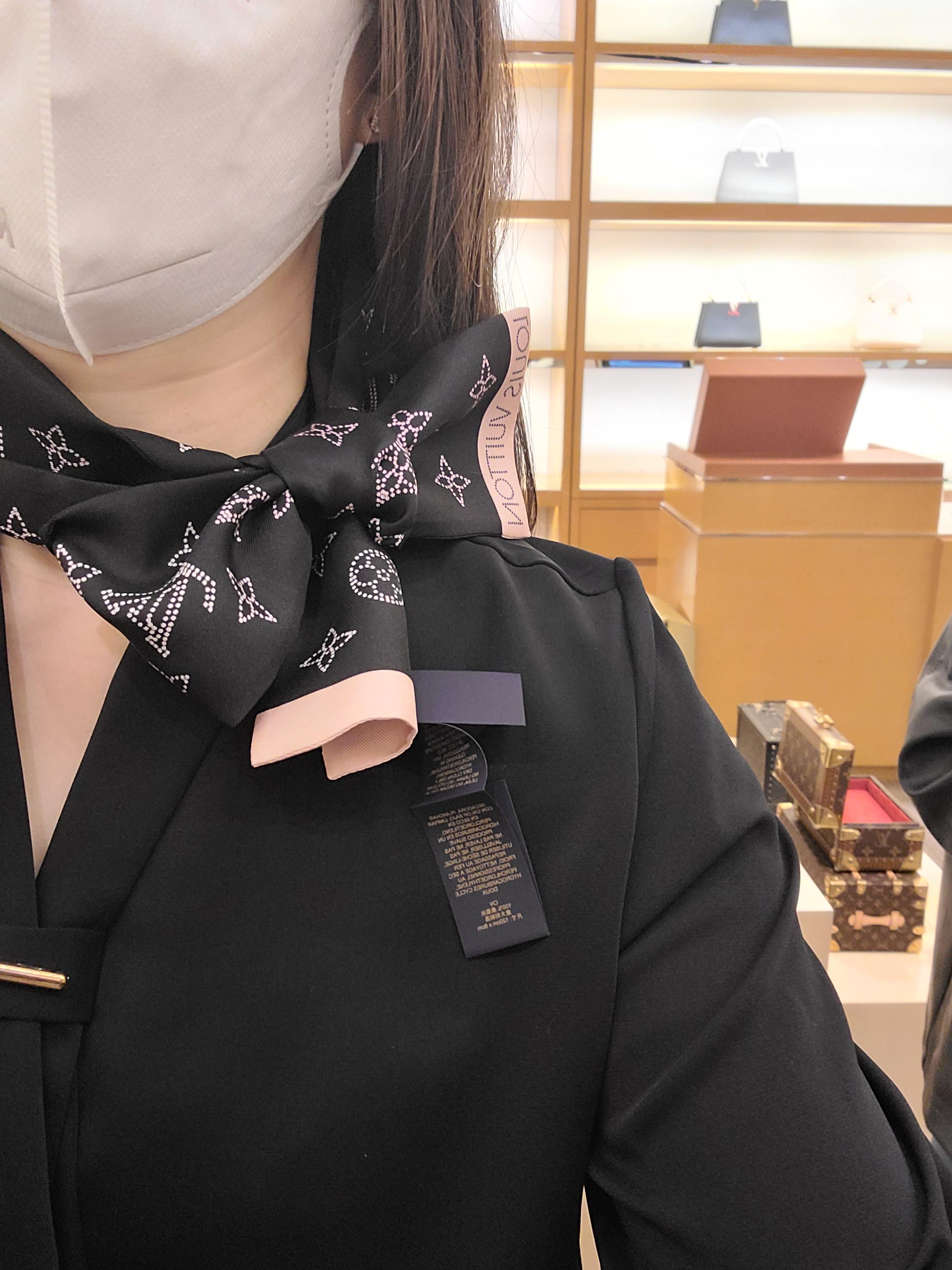 루이비통 신상 방도 실제 착용 모습입니다. 리본 형태 뿐 아니라, 그냥 걸치기만 해도 멋스러운 방도였습니다.
