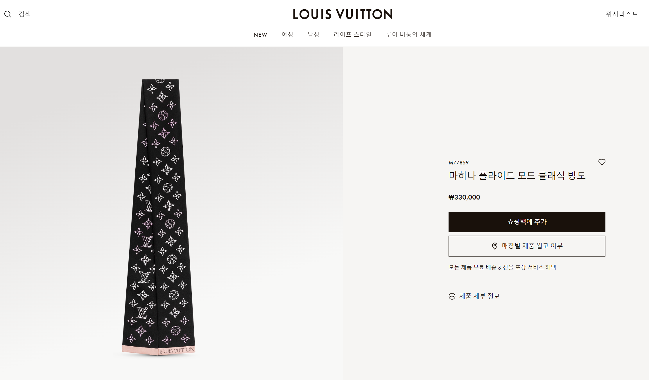 하기 루이비통 공식 홈페이지에서도 구입 가능하고, 선물 포장 옵션 선택시 선물 포장도 가능합니다.