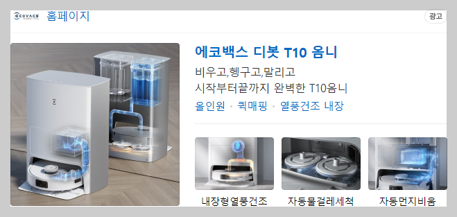 에코벡스의 최상급 모델인 X1옴니는 고성능 로봇 청소기의 주요 기능인 자동 먼지 비움, 자동 물걸레 세척, 열풍 건조 모두 가능한 제품이네요.