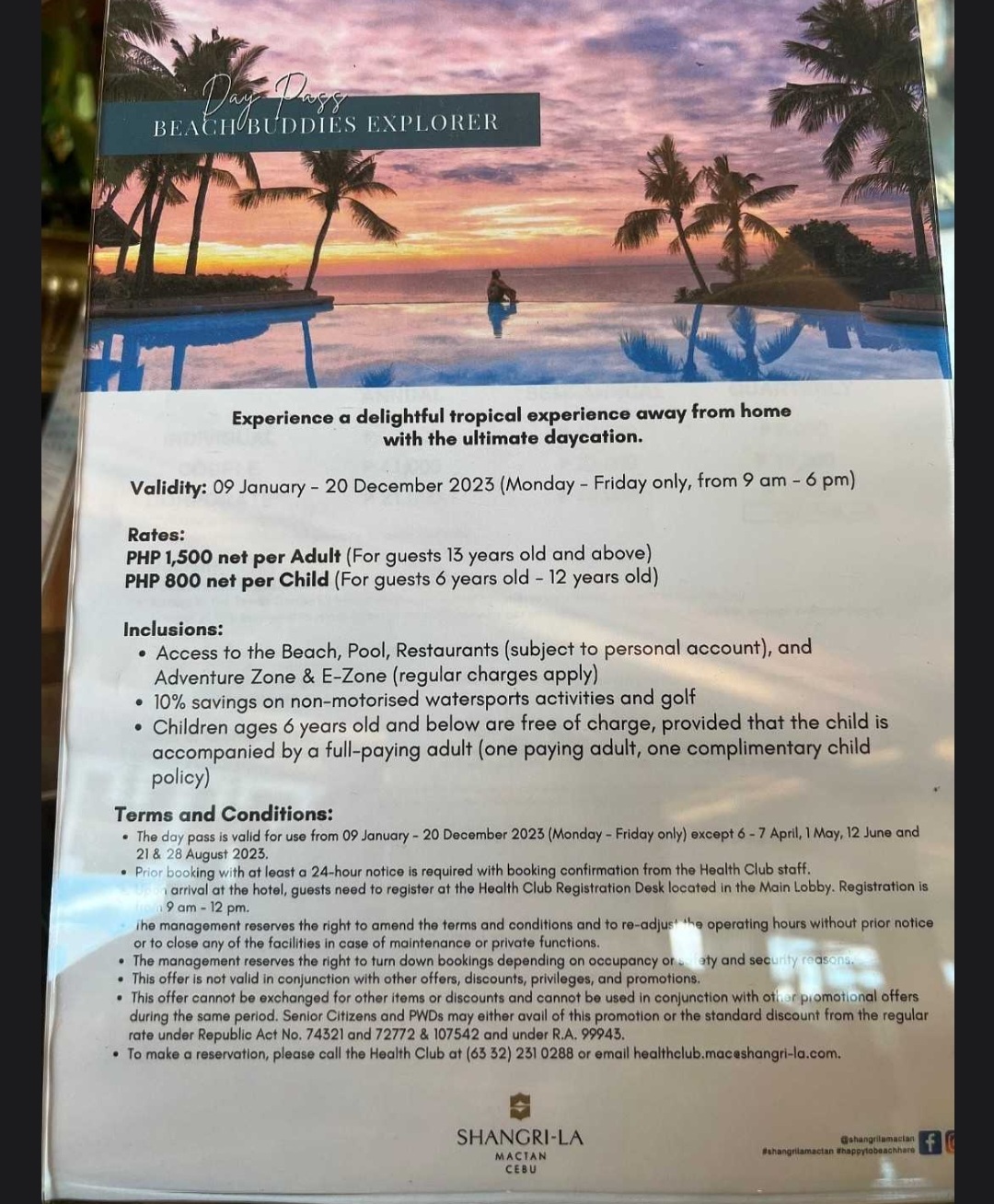 샹그릴라 데이유즈(Day USe) 정보 (출처: 세부 샹그릴라)